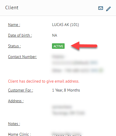 >> If the client's status has been changed it will reflect on their account. Below are the different statuses which will be shown on the client's account.