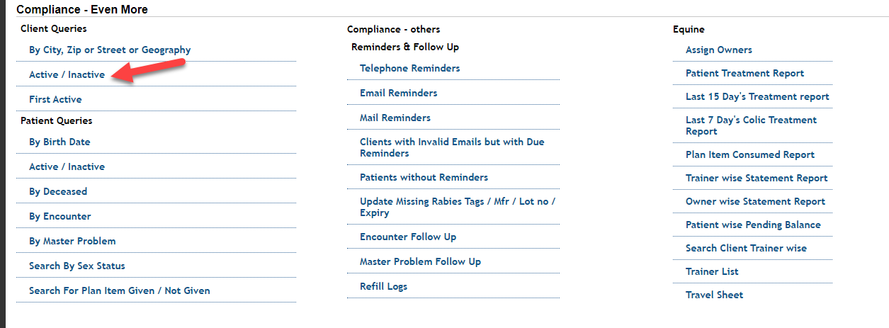 1. Select appropriate options like First Active from date, Active / Inactive / Deceased patient etc