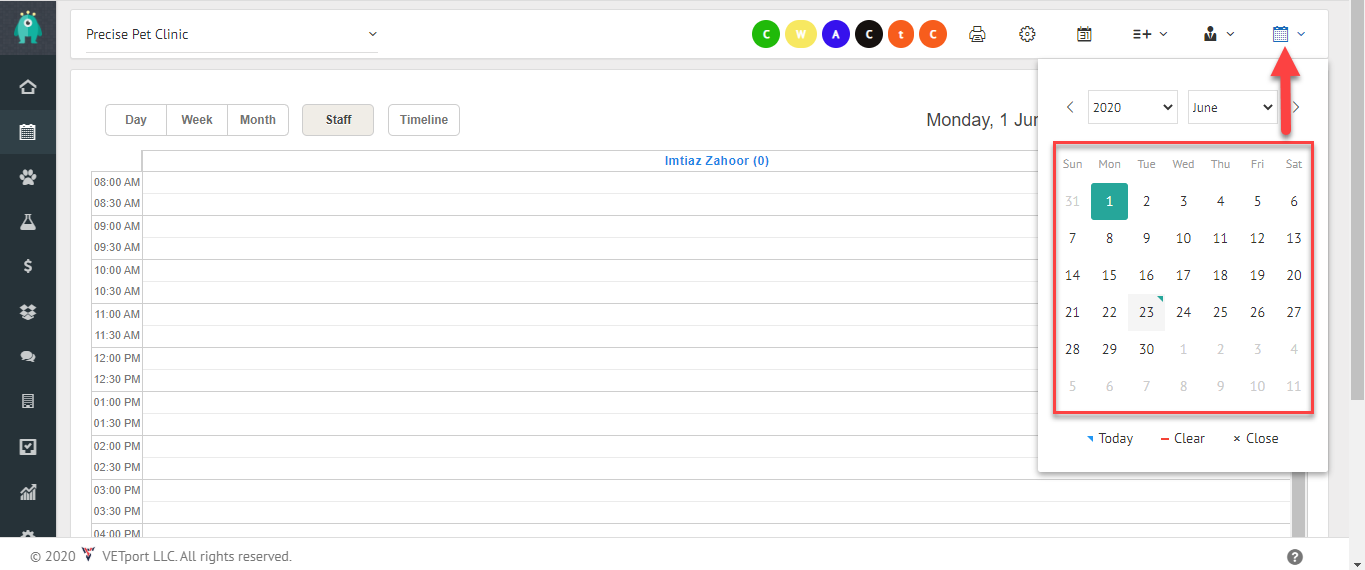 To add a past appointment, Click on appointment and then calendar icon as shown below and select the date you want to make a past appointment for.