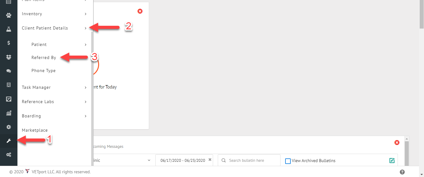 1) Please click on the setup icon as shown below. Navigate to Client Patient Details and then Referred by.