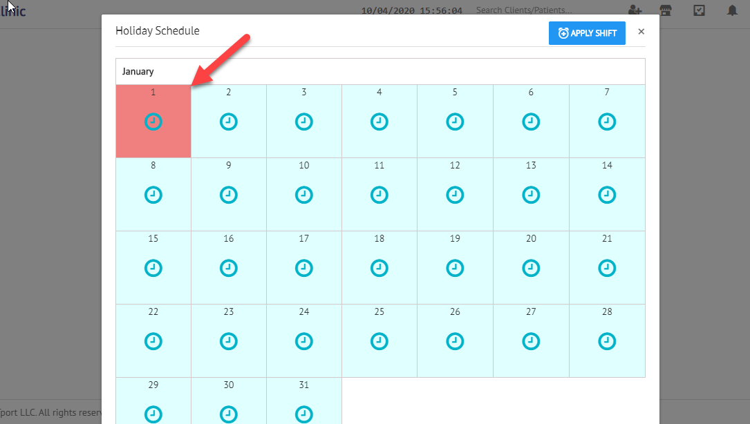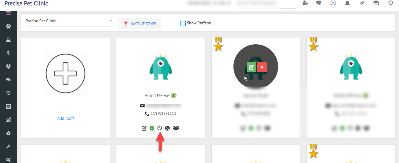2>> Click on the clock icon below the staff name on which you want to add the staff schedule. as shown below.