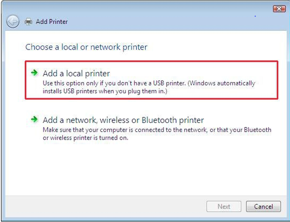 Step 4 Click Add a Local Printer. Use this option only if you don't have a USB printer. (Windows automatically installs USB printers when you plug them in).