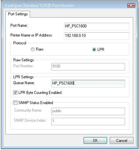 Check the box labeled LPR Byte Counting Enabled. Click OK.